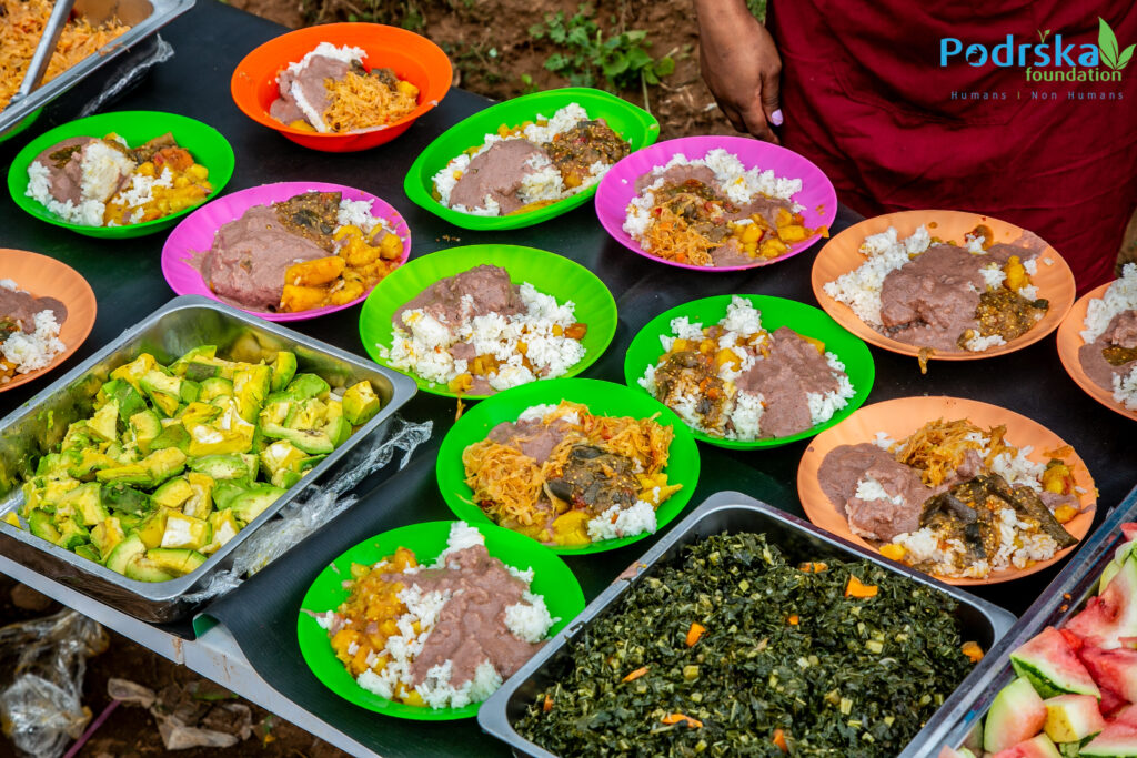 - Plant-Based School Meals: The heart of our campaign. We serve balanced, locally-sourced meals to 1,572 children daily across seven schools for many, the only consistent nutrition they receive. Each meal supports learning, health, and dignity while demonstrating the viability of plant-based nutrition.