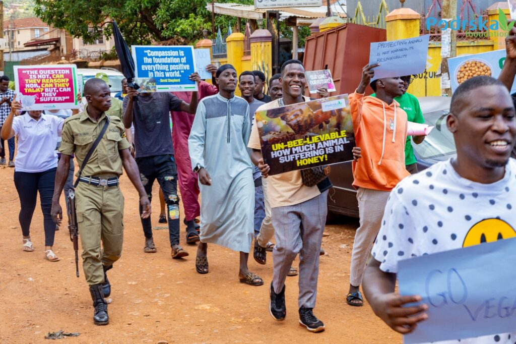 Real change happens where the public can see it. Our peaceful demonstrations and public marches bring attention to the industries and practices that cause suffering to animals, damage the environment, and often go unchallenged in everyday life.